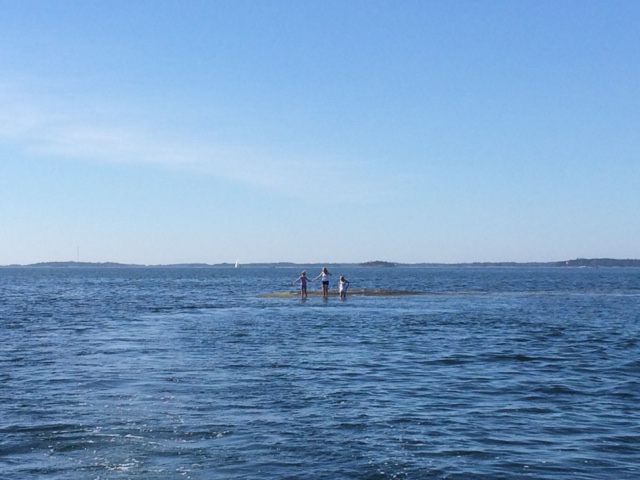 Viime viikonloppuna heräsimme sunnuntaina saaressa ja lähdimme mieheni enon kanssa läheiselle Oxen-saarelle veneellä. Jätimme lapset hetkeksi jättikivelle leikkimään ja menimme sitten kaikki yhdessä maihin Oxeniin.